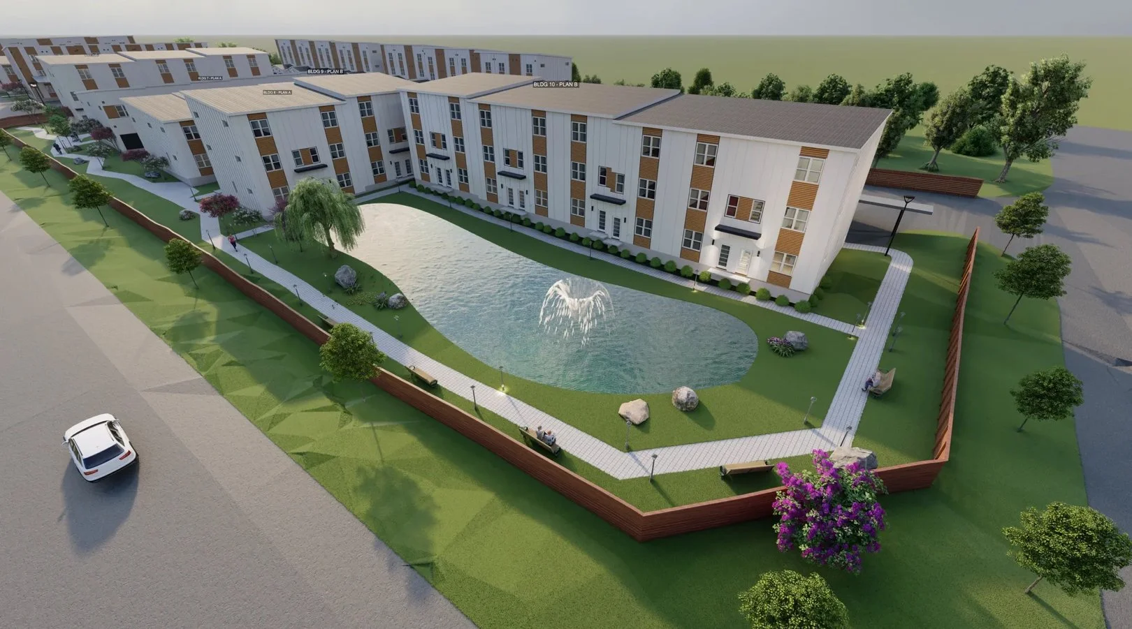 Multi-family townhome development near Dallas, providing 69 dwelling units fabricated with state of the art metal framing.